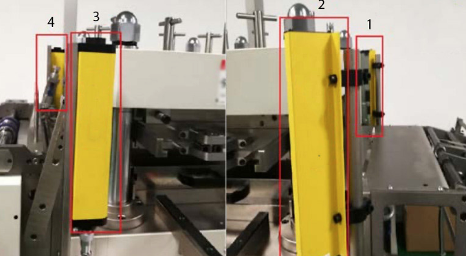THERE ARE FOUR ELECTRONIC PROTECTION LIGHT CURTAINS AROUND THE MACHINE.