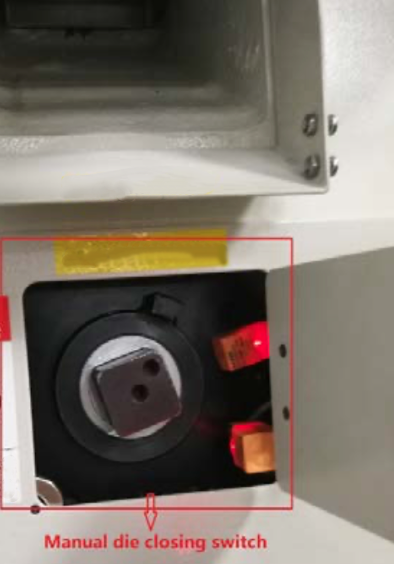 THE DIE CUTTING MACHINE HAS AUTOMATIC DIE CLOSING FUNCTION, ALSO KEPT MANUAL DIE CLOSING FUNCTION.